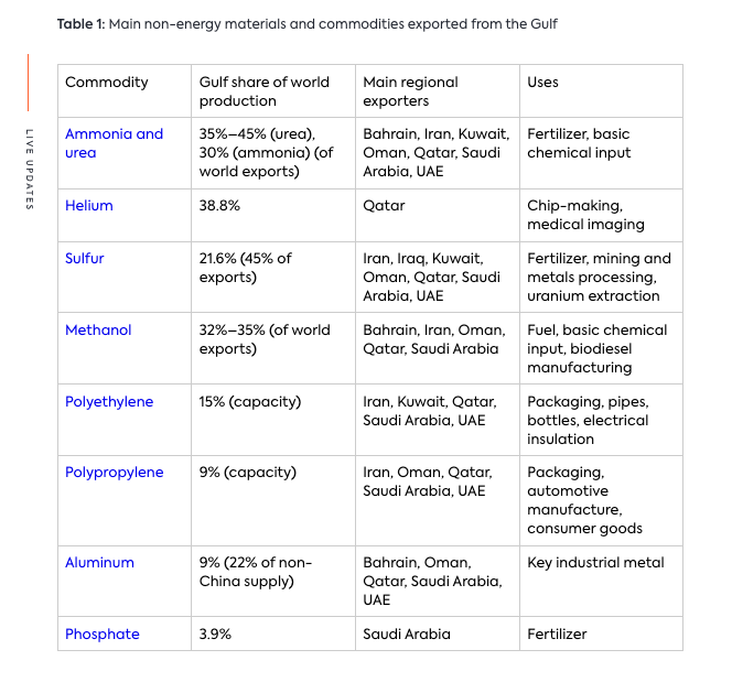 The world has never seen an interruption on this scale to the supply of stuff. It easily surpasses the 1979 oil crisis, sparked by the Iranian revolution, in which crude oil production declined by 4 percent. Forty-seven years later, Hormuz is the passageway for one fifth of the world’s crude oil and one fifth of its liquefied natural gas. It’s also the transit point for a third of exported urea—a feedstock used for making fertilizer which grows the food for an estimated half of the world’s population. Almost half of exported sulfur—used for fertilizer as well as extracting metals out of rock—are affected, as is helium, used for manufacturing microchips. Petrochemicals such as methanol and polyethylene are also being blocked.