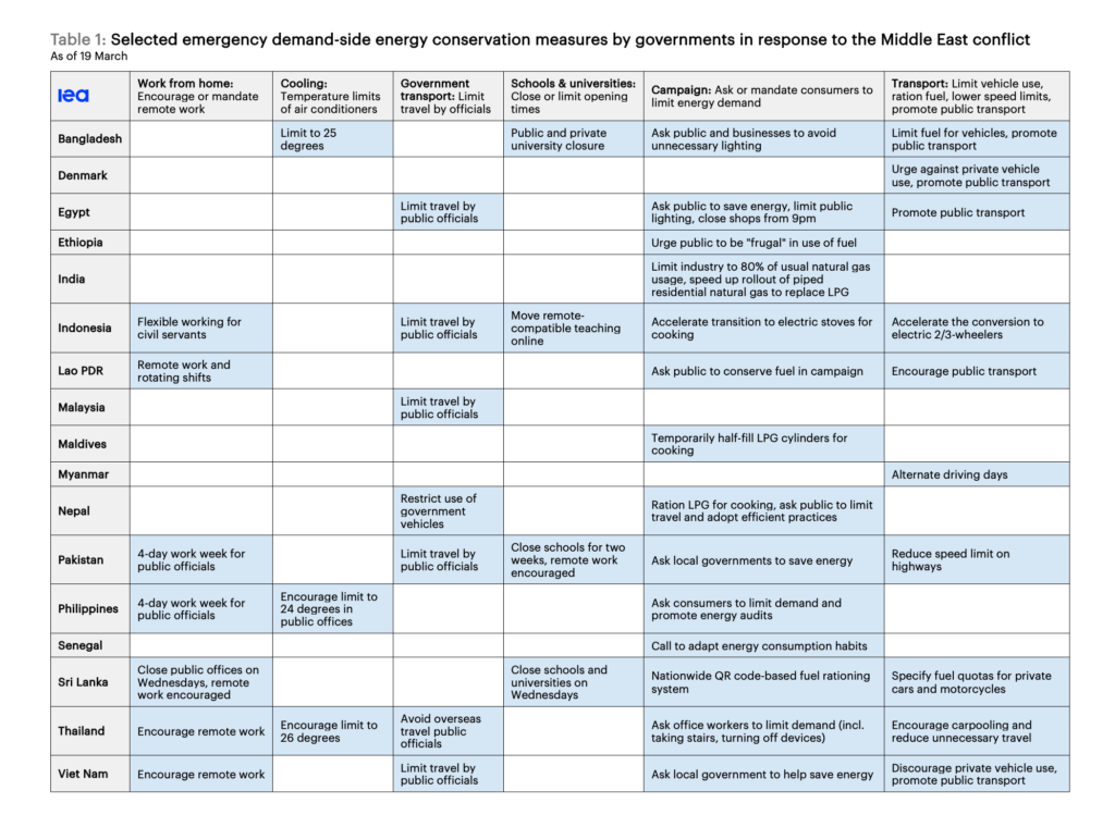 These are temporary measures, but there are already signs of enduring policy shifts. The Philippines’ state of emergency includes longer-term intentions to accelerate the move to renewable energy, electric vehicles, and active transport. South Korea, too, has loosened its restrictions on renewables.
