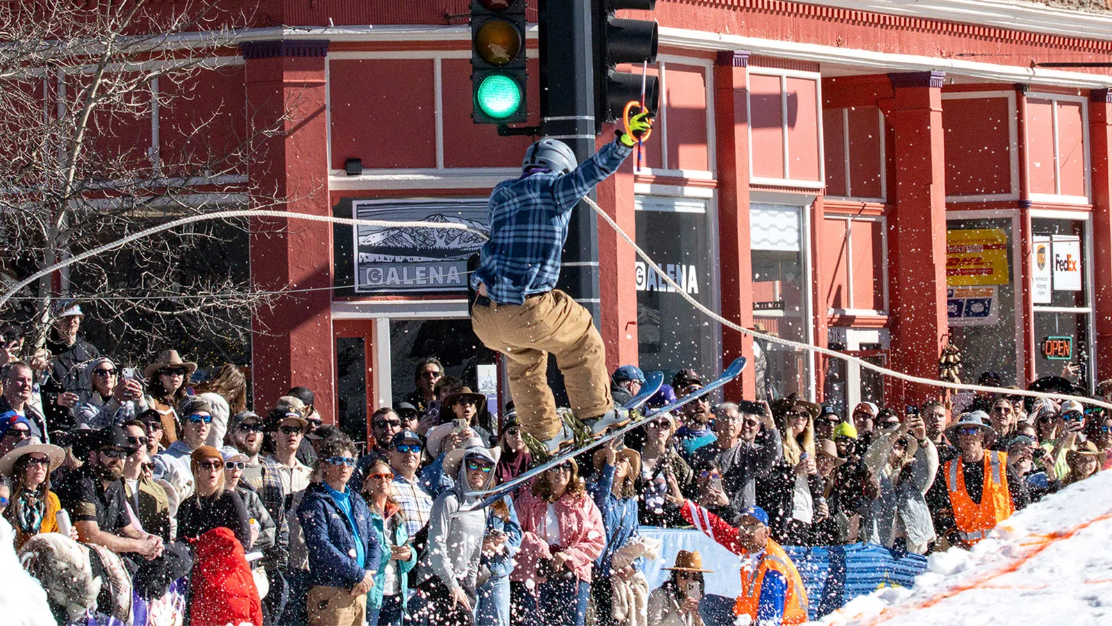 Equal parts rodeo and ski race, skijoring sits at the overlap of Colorado’s ranching and skiing cultures. Horses sprint down snowy tracks as skiers hang on behind them, navigating jumps and gates at speed.