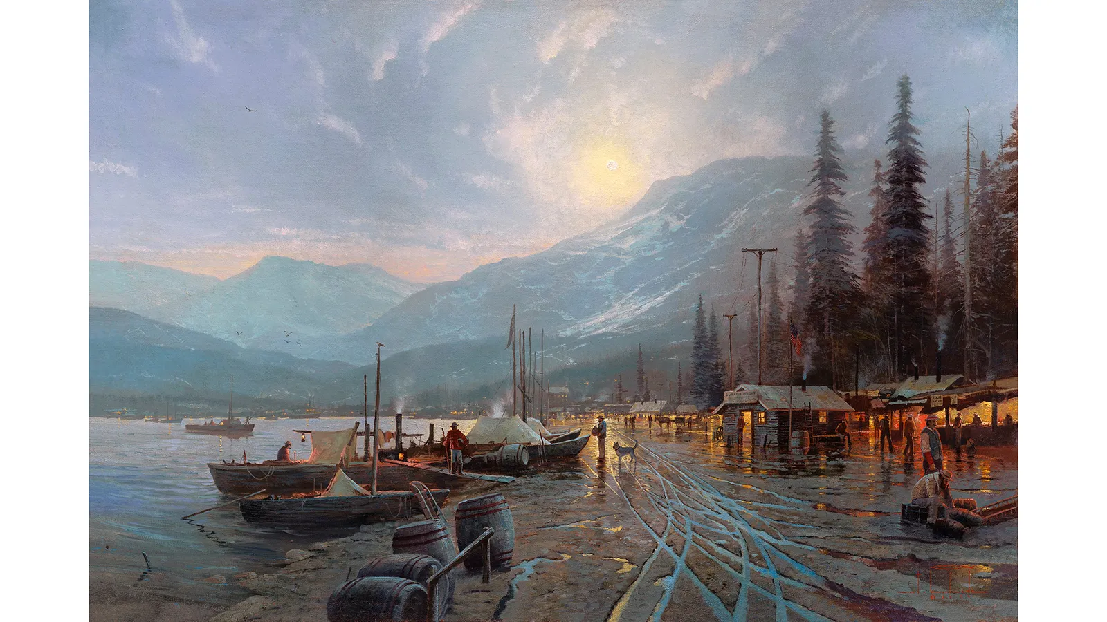 In Art for Everybody, Christopher Knight, the art critic of the Los Angeles Times, is contemptuous of Kinkade’s imagery. “It’s a cliché piled upon a fantasy piled upon a bad idea,” he says. “The colour is juiced and the light coming from inside those cottages is intense and blaring.” Just as importantly, as far as his critics were concerned, Kinkade’s pictures had nothing to them beyond their superficial decorative qualities. “They are banal and hollow, with no intent to say anything meaningful,” says Mullins. “Today we would think they had been produced by AI – designed as if by algorithm to a certain formula.” But Yousef insists that Kinkade’s skill can’t be discounted. “There were actually other people who were painting cottages and Christmas scenes and putting them on plates and all that stuff,” she notes, “and the thing is that Kinkade’s were so much better. His works just blew everybody else’s out of the water.”